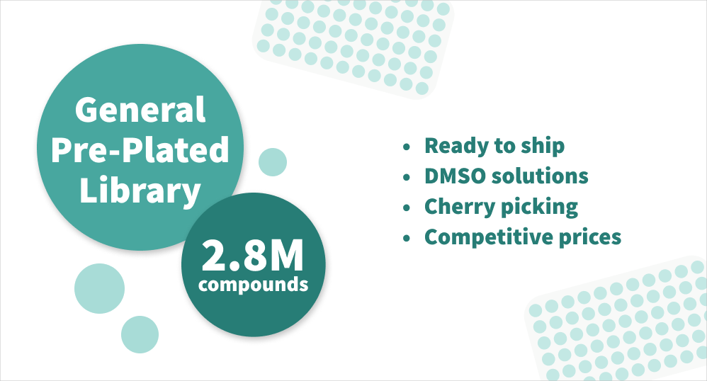 Chemspace offers a new product - General Pre-Plated Library which is represented by more than 822K+ molecules - the excellent starting point in varied HTS assays. The diversity of molecules in the General Pre-Plated Library makes it ideal for participating in brute force screening campaigns, increasing the chances of finding a "needle in the haystack" with further steps in hit-to-lead transformations.