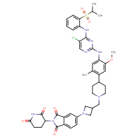 IUPAC Name:5-{3-[(4-{4-[(5-chloro-4-{[2-(propane-2-sulfonyl)phenyl]amino}pyrimidin-2-yl)amino]-5-methoxy-2-methylphenyl}piperidin-1-yl)methyl]azetidin-1-yl}-2-(2,6-dioxopiperidin-3-yl)-2,3-dihydro-1H-isoindole-1,3-dione