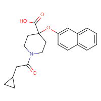 IUPAC Name:1-(2-cyclopropylacetyl)-4-(naphthalen-2-yloxy)piperidine-4-carboxylic acid