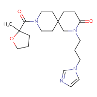 IUPAC Name:2-[3-(1H-imidazol-1-yl)propyl]-9-(2-methyloxolane-2-carbonyl)-2,9-diazaspiro[5.5]undecan-3-one