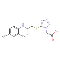 Supplier Lead time Price, $ Pack Princeton Biomolecular ResearchShips from: United StatesTo:10 days 88.00 ChemBridge Corp.Ships from: United StatesTo:14 days 68.201 mgDescription: Name: [5-({2-[(2,4-dimethylphenyl)amino]-2-oxoethyl}thio)-1H-tetrazol-1-yl]acetic acid; Stereochemistry: achiral; Compound state: solidFor a custom pack size or bulk