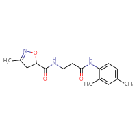Supplier Lead time Price, $ Pack ChemBridge Corp.Ships from: United StatesTo:14 days 99.00 Description: Name: N-{3-[(2,4-dimethylphenyl)amino]-3-oxopropyl}-3-methyl-4,5-dihydroisoxazole-5-carboxamide; Stereochemistry: racemic; Compound state: dry filmFor a custom pack size or bulk