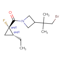 IUPAC Name:rac-3-(1-bromo-2-methylpropan-2-yl)-1-[(1R,2S)-2-ethyl-1-fluorocyclopropanecarbonyl]azetidineFor a custom pack size or bulk