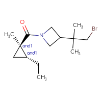 IUPAC Name:rac-3-(1-bromo-2-methylpropan-2-yl)-1-[(1R,2R)-2-ethyl-1-methylcyclopropanecarbonyl]azetidineFor a custom pack size or bulk