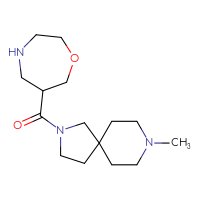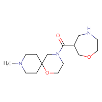 Supplier Lead time Price, $ Pack ChemBridge Corp.Ships from: United StatesTo:14 days 68.2 Description: Name: 8-methyl-2-(1,4-oxazepan-6-ylcarbonyl)-2,8-diazaspiro[4.5]decane dihydrochloride; Stereochemistry: racemic; Compound state: dry filmFor a custom pack size or bulk