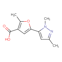 IUPAC Name:5-(1,3-dimethyl-1H-pyrazol-5-yl)-2-methylfuran-3-carboxylic acidFor a custom pack size or bulk