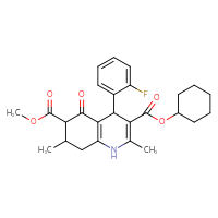 Supplier Lead time Price, $ Pack Princeton Biomolecular ResearchShips from: United StatesTo:10 days 88.00 ChemBridge Corp.Ships from: United StatesTo:14 days 68.20 Description: Name: 3-cyclohexyl 6-methyl 4-(2-fluorophenyl)-2,7-dimethyl-5-oxo-1,4,5,6,7,8-hexahydro-3,6-quinolinedicarboxylate; Stereochemistry: unknown; Compound state: solidFor a custom pack size or bulk