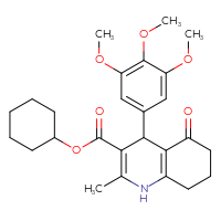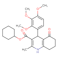 Supplier Lead time Price, $ Pack Princeton Biomolecular ResearchShips from: United StatesTo:10 days 88.00 ChemBridge Corp.Ships from: United StatesTo:14 days 68.20 Description: Name: cyclohexyl 2-methyl-5-oxo-4-(3,4,5-trimethoxyphenyl)-1,4,5,6,7,8-hexahydro-3-quinolinecarboxylate; Stereochemistry: unknown; Compound state: solidFor a custom pack size or bulk