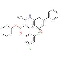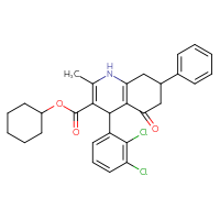 Supplier Lead time Price, $ Pack Princeton Biomolecular ResearchShips from: United StatesTo:10 days 88.00 SpecsShips from: NetherlandsTo:12 days 420.00 Description: cyclohexyl 4-(2,3-dichlorophenyl)-2-methyl-5-oxo-7-phenyl-1,4,5,6,7,8-hexahydro-3-quinolinecarboxylateChemBridge Corp.Ships from: United StatesTo:14 days 68.20 Description: Name: cyclohexyl 4-(2,3-dichlorophenyl)-2-methyl-5-oxo-7-phenyl-1,4,5,6,7,8-hexahydro-3-quinolinecarboxylate; Stereochemistry: unknown; Compound state: solidFor a custom pack size or bulk