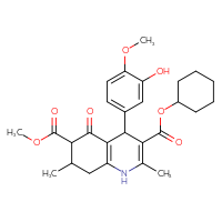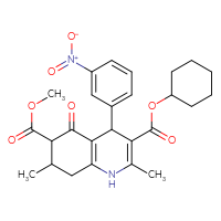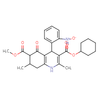 Supplier Lead time Price, $ Pack Princeton Biomolecular ResearchShips from: United StatesTo:10 days 88.00 ChemBridge Corp.Ships from: United StatesTo:14 days 68.20 Description: Name: 3-cyclohexyl 6-methyl 2,7-dimethyl-4-(3-nitrophenyl)-5-oxo-1,4,5,6,7,8-hexahydro-3,6-quinolinedicarboxylate; Stereochemistry: unknown; Compound state: solidFor a custom pack size or bulk