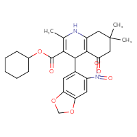 Supplier Lead time Price, $ Pack Princeton Biomolecular ResearchShips from: United StatesTo:10 days 88.00 ChemBridge Corp.Ships from: United StatesTo:14 days 68.20 Description: Name: cyclohexyl 2,7,7-trimethyl-4-(6-nitro-1,3-benzodioxol-5-yl)-5-oxo-1,4,5,6,7,8-hexahydro-3-quinolinecarboxylate; Stereochemistry: unknown; Compound state: solidFor a custom pack size or bulk
