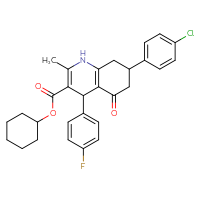 Supplier Lead time Price, $ Pack Princeton Biomolecular ResearchShips from: United StatesTo:10 days 88.00 ChemBridge Corp.Ships from: United StatesTo:14 days 68.20 Description: Name: cyclohexyl 4-(2-chlorophenyl)-7-(4-chlorophenyl)-2-methyl-5-oxo-1,4,5,6,7,8-hexahydro-3-quinolinecarboxylate; Stereochemistry: unknown; Compound state: solidFor a custom pack size or bulk