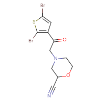 IUPAC Name:4-[2-(2,5-dibromothiophen-3-yl)-2-oxoethyl]morpholine-2-carbonitrile