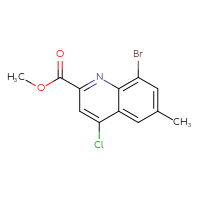 CAS: 1260890-40-1IUPAC Name:methyl 8-bromo-4-chloro-6-methylquinoline-2-carboxylate