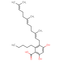 IUPAC Name:4,6-dihydroxy-2-pentyl-3-[(2E,6E)-3,7,11-trimethyldodeca-2,6,10-trien-1-yl]benzoic acid