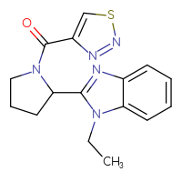 CAS: 1825509-77-0IUPAC Name:1-ethyl-2-[1-(1,2,5-thiadiazole-3-carbonyl)pyrrolidin-2-yl]-1H-1,3-benzodiazole