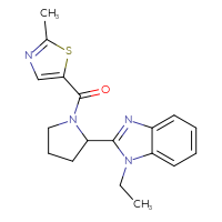 CAS: 1311852-45-5IUPAC Name:1-ethyl-2-[1-(2-methyl-1,3-thiazole-5-carbonyl)pyrrolidin-2-yl]-1H-1,3-benzodiazoleFor a custom pack size or bulk
