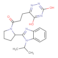 IUPAC Name:3-(3-hydroxy-5-oxo-4,5-dihydro-1,2,4-triazin-6-yl)-N-[(1S)-2-methyl-1-[1-(propan-2-yl)-1H-1,3-benzodiazol-2-yl]propyl]propanamide