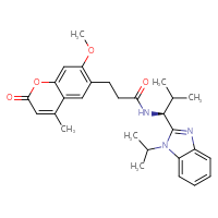 IUPAC Name:3-(7-methoxy-4-methyl-2-oxo-2H-chromen-6-yl)-N-[(1S)-2-methyl-1-[1-(propan-2-yl)-1H-1,3-benzodiazol-2-yl]propyl]propanamide
