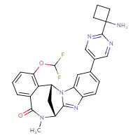 IUPAC Name:(1R,11R)-5-[2-(1-aminocyclobutyl)pyrimidin-5-yl]-18-(difluoromethoxy)-12-methyl-2,9,12-triazapentacyclo[9.8.1.0²,¹⁰.0³,⁸.0¹⁴,¹⁹]icosa-3,5,7,9,14,16,18-heptaen-13-one