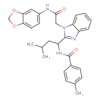 IUPAC Name:N-[1-(1-{[(2H-1,3-benzodioxol-5-yl)carbamoyl]methyl}-1H-1,3-benzodiazol-2-yl)-3-methylbutyl]-4-methylbenzamide