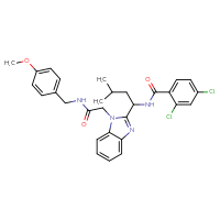 IUPAC Name:2,4-dichloro-N-{1-[1-({[(4-methoxyphenyl)methyl]carbamoyl}methyl)-1H-1,3-benzodiazol-2-yl]-3-methylbutyl}benzamide