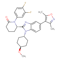 IUPAC Name:(6S)-1-(3,4-difluorophenyl)-6-[5-(3,5-dimethyl-1,2-oxazol-4-yl)-1-[(1r,4r)-4-methoxycyclohexyl]-1H-1,3-benzodiazol-2-yl]piperidin-2-one