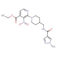 IUPAC Name:ethyl 2-(4-{[(1-methyl-1H-pyrazol-4-yl)formamido]methyl}piperidin-1-yl)-3-nitropyridine-4-carboxylateFor a custom pack size or bulk