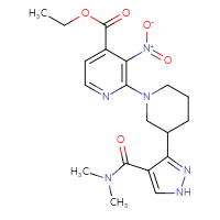 CAS: 2108391-06-4IUPAC Name:ethyl 2-{3-[4-(dimethylcarbamoyl)-1H-pyrazol-3-yl]piperidin-1-yl}-3-nitropyridine-4-carboxylate
