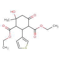 IUPAC Name:1,3-diethyl 4-hydroxy-4-methyl-6-oxo-2-(thiophen-3-yl)cyclohexane-1,3-dicarboxylate