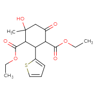 IUPAC Name:1,3-diethyl 4-hydroxy-4-methyl-6-oxo-2-(thiophen-2-yl)cyclohexane-1,3-dicarboxylate
