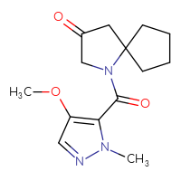 IUPAC Name:1-(4-methoxy-1-methyl-1H-pyrazole-5-carbonyl)-1-azaspiro[4.4]nonan-3-oneFor a custom pack size or bulk
