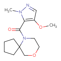 IUPAC Name:6-(4-methoxy-1-methyl-1H-pyrazole-5-carbonyl)-9-oxa-6-azaspiro[4.5]decaneFor a custom pack size or bulk