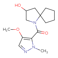 IUPAC Name:1-(4-methoxy-1-methyl-1H-pyrazole-5-carbonyl)-1-azaspiro[4.4]nonan-3-olFor a custom pack size or bulk