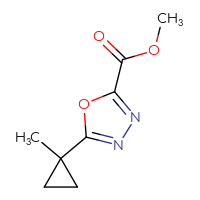CAS: 1858754-51-4IUPAC Name:methyl 5-(1-methylcyclopropyl)-1,3,4-oxadiazole-2-carboxylate